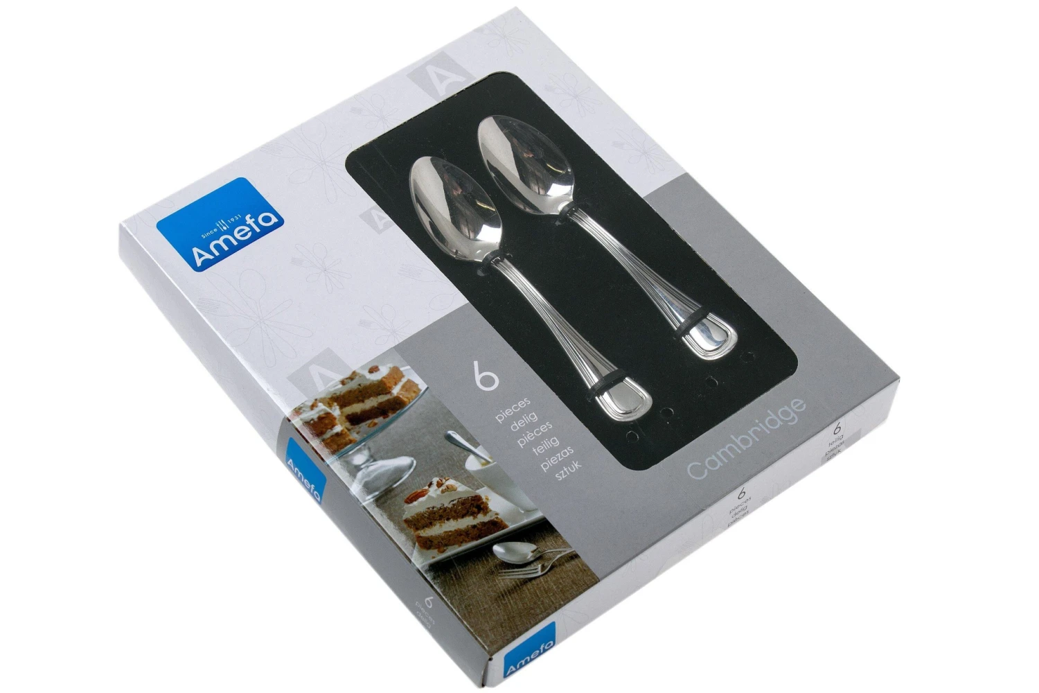 Das Amefa Cambridge Besteck ist Teil des Premium-Sortiments, in dem Qualität mit exklusivem Design und Funktionalität kombiniert werden. Das Cambridge Modell hat eine anmutige Verzierung auf dem Griff. Diese Serie wird mit großer Sorgfalt und Präzision hergestellt und besteht aus Chrom-Nickel-Stahl, besser bekannt als rostfreier 18/10 Stahl. Dadurch ist diese Serie sehr korrosionsbeständig. Die Produkte dieser Serie haben ein Hochglanz-Finish und sind spülmaschinenfest.