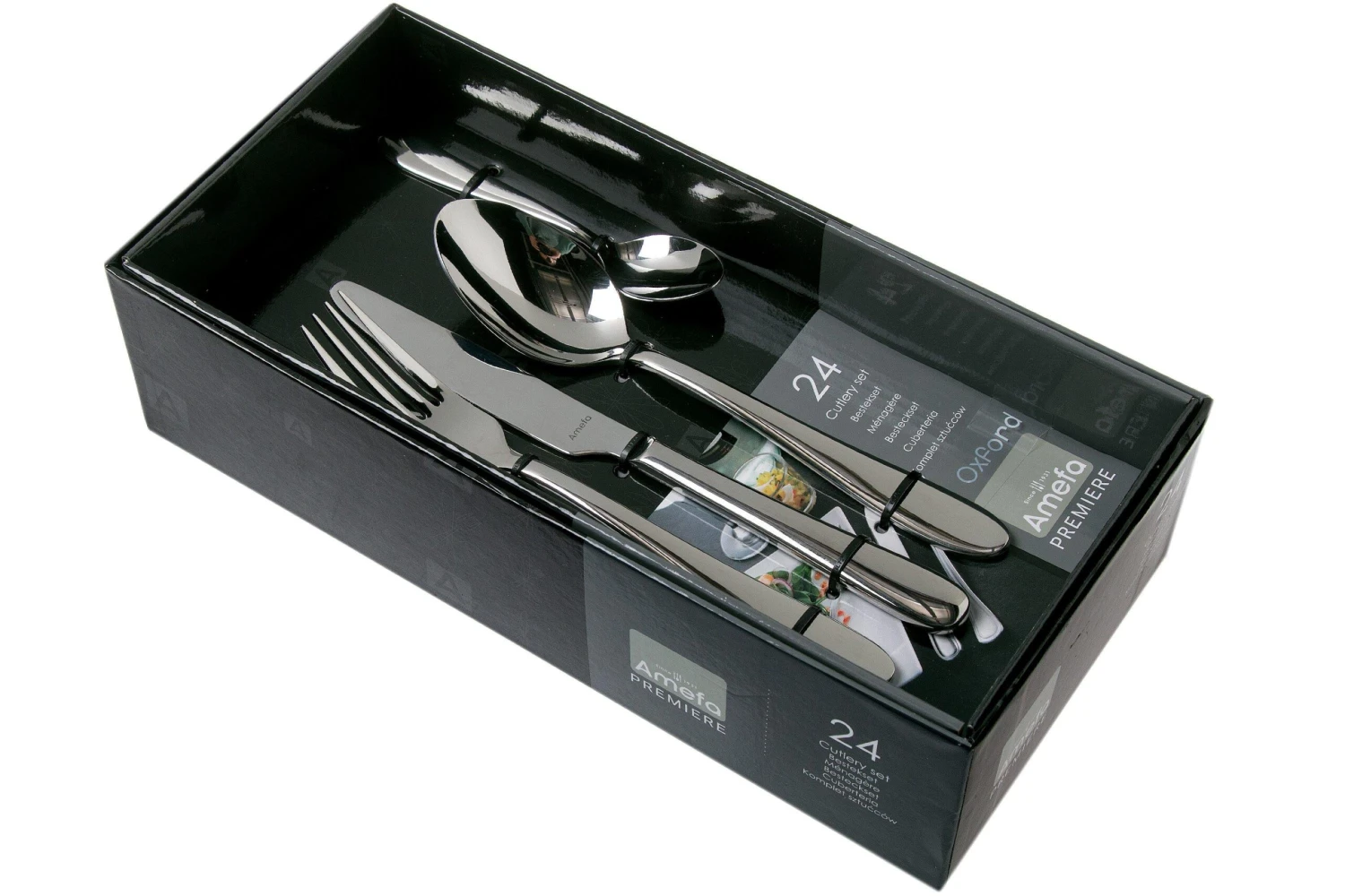 Amefa Oxford ist ein Modell aus dem Premium-Sortiment, in dem Qualität mit exklusivem Design und Funktionalität kombiniert werden. Die eleganten Formen kombinieren ein traditionelles Design mit der Moderne. Diese Serie wird mit großer Sorgfalt und Präzision hergestellt und besteht aus Chrom-Nickel-Stahl, besser bekannt als rostfreier 18/10 Stahl. Dadurch ist diese Serie sehr korrosionsbeständig. Die Produkte dieser Serie sind spülmaschinenfest.
