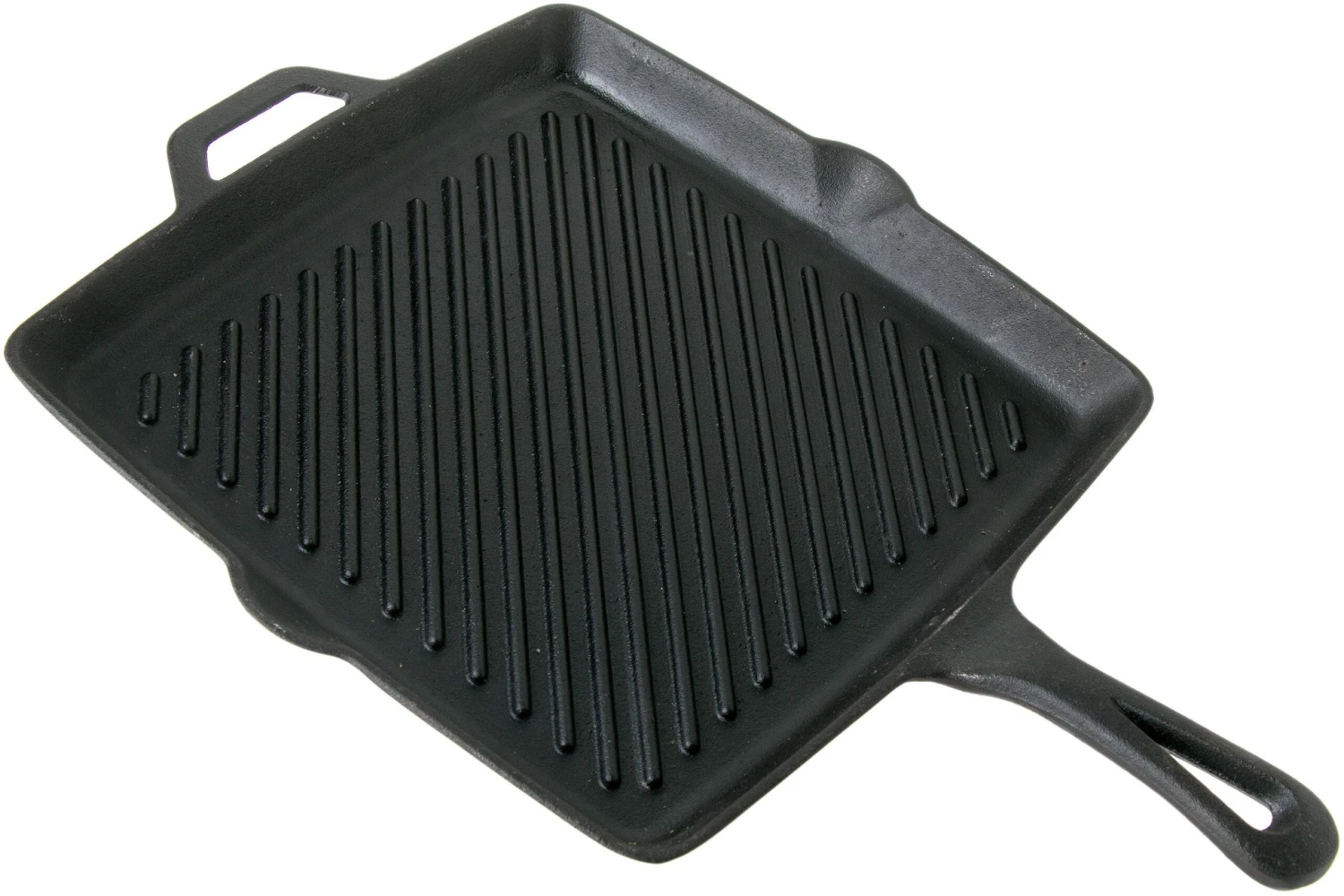 Die Camp Chef 11″ Square Skillet With Ribs Grillpfanne ist aus Gusseisen gefertigt und perfekt geeignet, um ein zartes Stück Fleisch oder köstliches Gemüse zu grillen. Die Rillen sorgen nicht nur dafür, dass das Fett vom Fleisch weggeführt wird, sondern erzeugen auch perfekte Grillstreifen. Die Pfanne ist für den Herd, aber auf für offenes Feuer geeignet. Die Pfanne hat einen komfortablen Griff und einen weiteren Griff zur Unterstützung, sodass Du die Pfanne leicht anheben kannst.