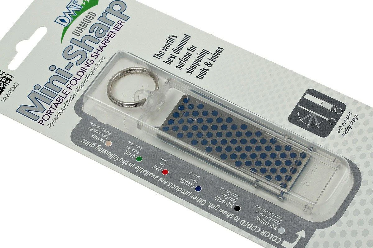 Einfach diesen kompakten Schleifstein mit Diamantschleiffläche am Schlüsselbund befestigen, und Sie haben immer und überall die Möglichkeit, Ihre Messer eben kurz nachzuschärfen. Trotz seiner geringen Größe ist dieser Schleifstein ein echter DMT-Schleifstein mit entsprechender Schleifqualität, der richtig zum Schärfen eingesetzt werden kann.