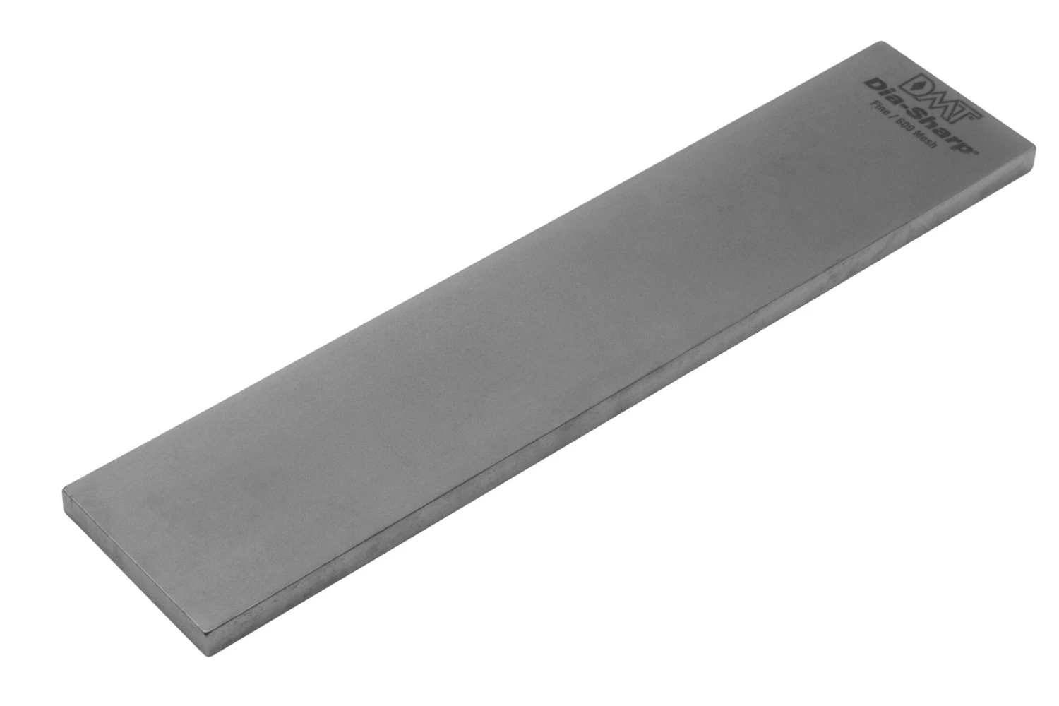 Der DMT DiaSharp 11,5×2,5 extra grob/fein ist ein extra langer Diamantschleifstein mit zwei Seiten. Diamantschleifsteine schärfen schnell und je nach Körnung auch sehr scharf. Dieser DMT DiaSharp Bench Stone ist groß und eignet sich daher für alle Messertypen, einschließlich großer Küchenmesser. Ein großer Vorteil beim Schleifen auf einem Diamantschleifstein ist, dass er nicht geglättet werden muss. Bei diesem DiaSharp Stein ist der schleifende Diamant auf einer dicken Stahlplatte von 9 mm befestigt. Dadurch wird die Ebenheit des Schleifsteins gewährleistet.