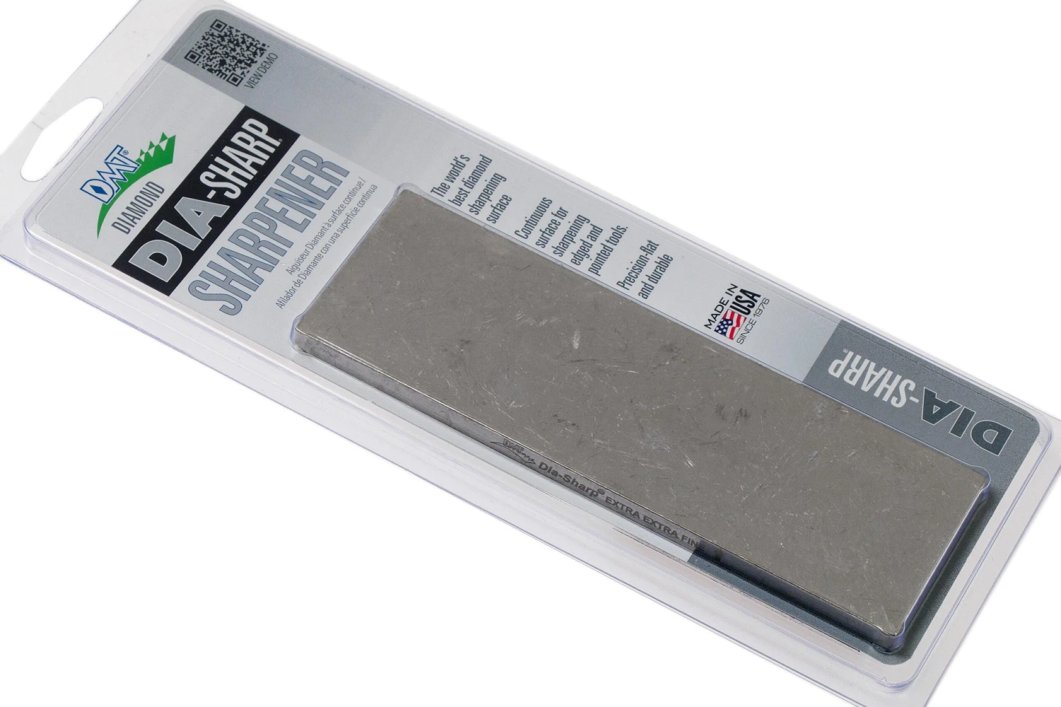 Der DMT DiaSharp Bench Stone 6×2 D6E einseitig, extra extra fein ist ein kompakter Schleifstein. Die extra feine Seite enthält Diamantpartikel, die nur 3 Mikrometer klein sind!