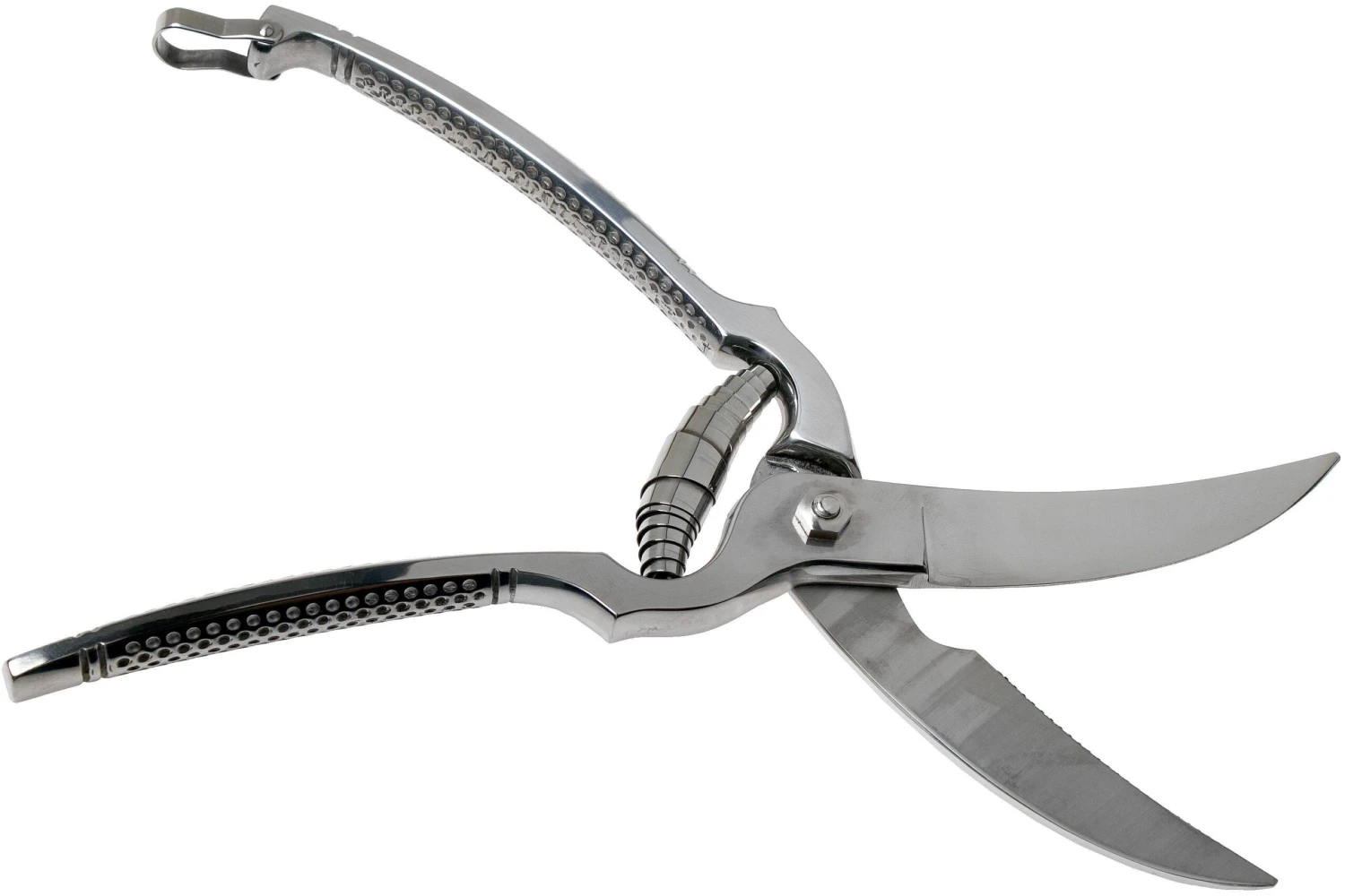 Die Due Cigni Geflügelschere ist stärker als die anderen Küchenscheren. Das ist auch gut so. Denn wie der Name schon verrät, kannst Du mit dieser Schere Geflügel schneiden. Hühnerknochen sind also kein Problem. Die Feder in der Schere sorgt dafür, dass Du nicht einfach abrutschst. Das sorgt auch für ein sichereres Gefühl, da man beim Schneiden von Geflügel manchmal viel Kraft einsetzen muss. Die Schere ist aus rostfreiem Stahl gefertigt und mit einem Clip versehen, sodass Du sie sicher und geschlossen verstauen kannst.