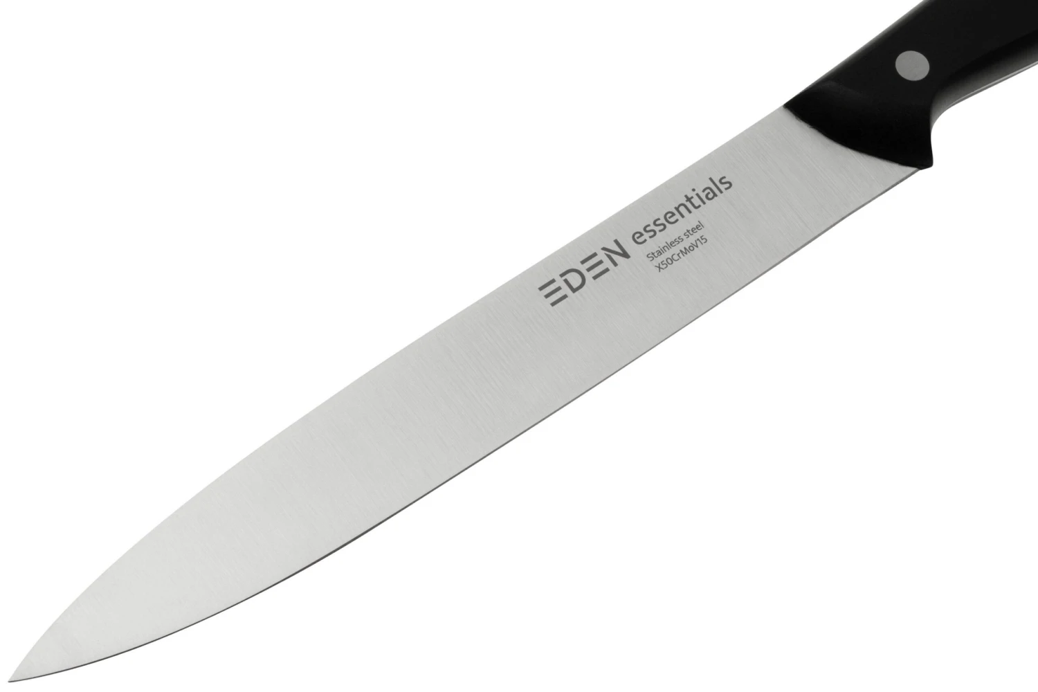 Das Eden Essentials-Fleischmesser hat eine lange, schmale Klinge und einen feinen Schnitt. Perfekt zum Schneiden aller Arten von Fleisch. Durch die schmale Klinge bleibt das Fleisch nicht am Messer haften. Aufgrund der Länge bist Du in der Lage, lange, gerade Schneidbewegungen auszuführen. Verwende beim Schneiden die gesamte Länge der Klinge.