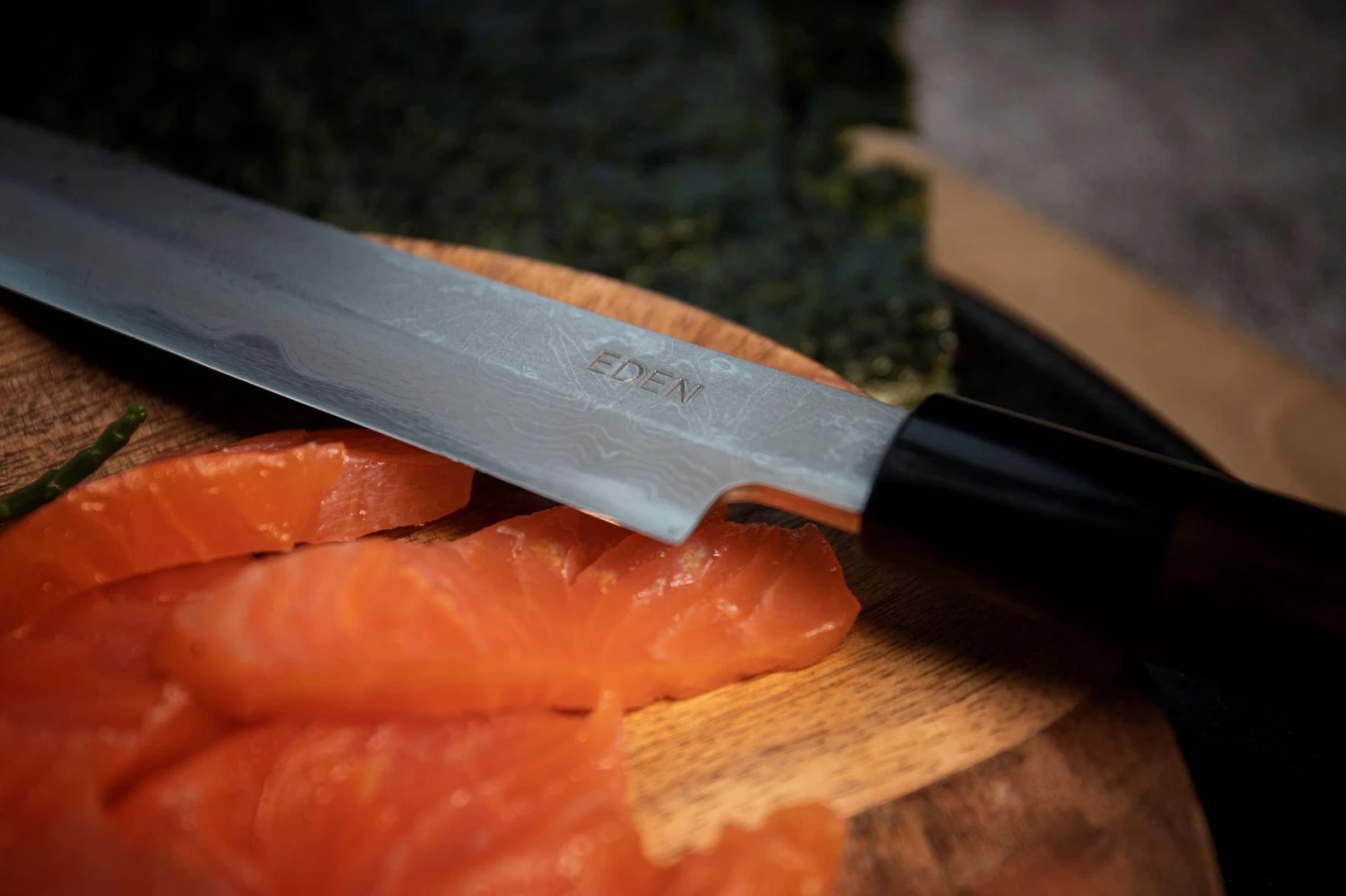 Das Eden Takobiki Ryoba 27 cm ist ein kleines Samurai-Schwert für die Küche. Mit einer Klingenlänge von 27 cm kannst Du mit nur einer Bewegung das dünnste Sashimi schneiden!
