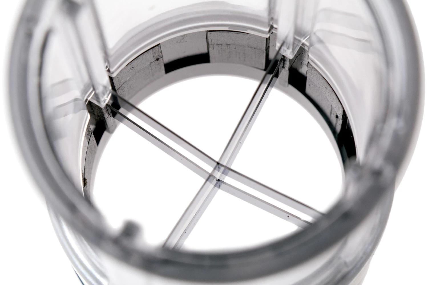 Mit dem GEFU Flexicut Obst- und Gemüseschneider kannst Du Obst- oder Gemüsestücke mit einem sanften Druck in Keile schneiden. Die innere Klinge aus rostfreiem Stahl ist verstellbar, so dass Du wählen kannst, ob Du vier oder acht Obststücke haben möchtest. Das transparente Gehäuse besteht aus Kunststoff. Dadurch ist die Küchenhilfe für die Reinigung in der Spülmaschine geeignet.