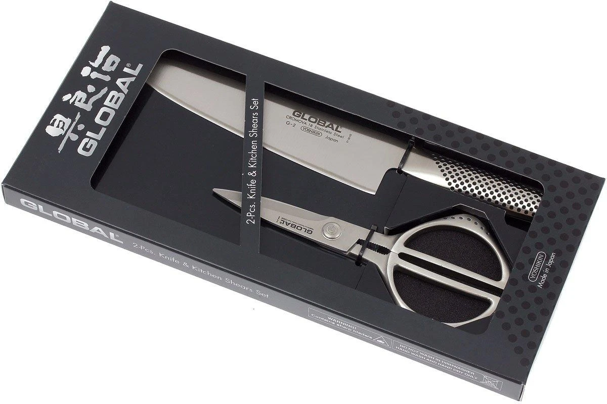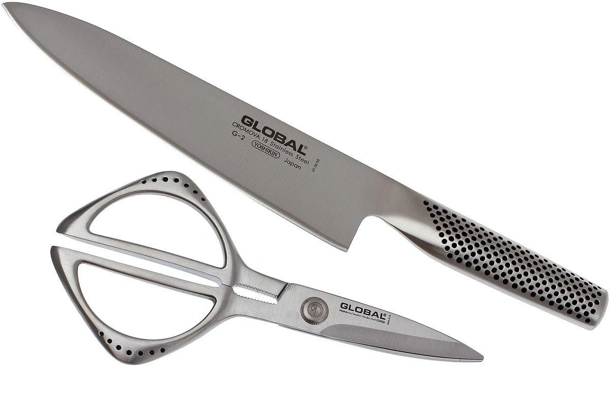 Global Messerset 2-teilig. Enthält die folgenden Modelle: G2 Kochsmesser und GKS210 Küchenschere.