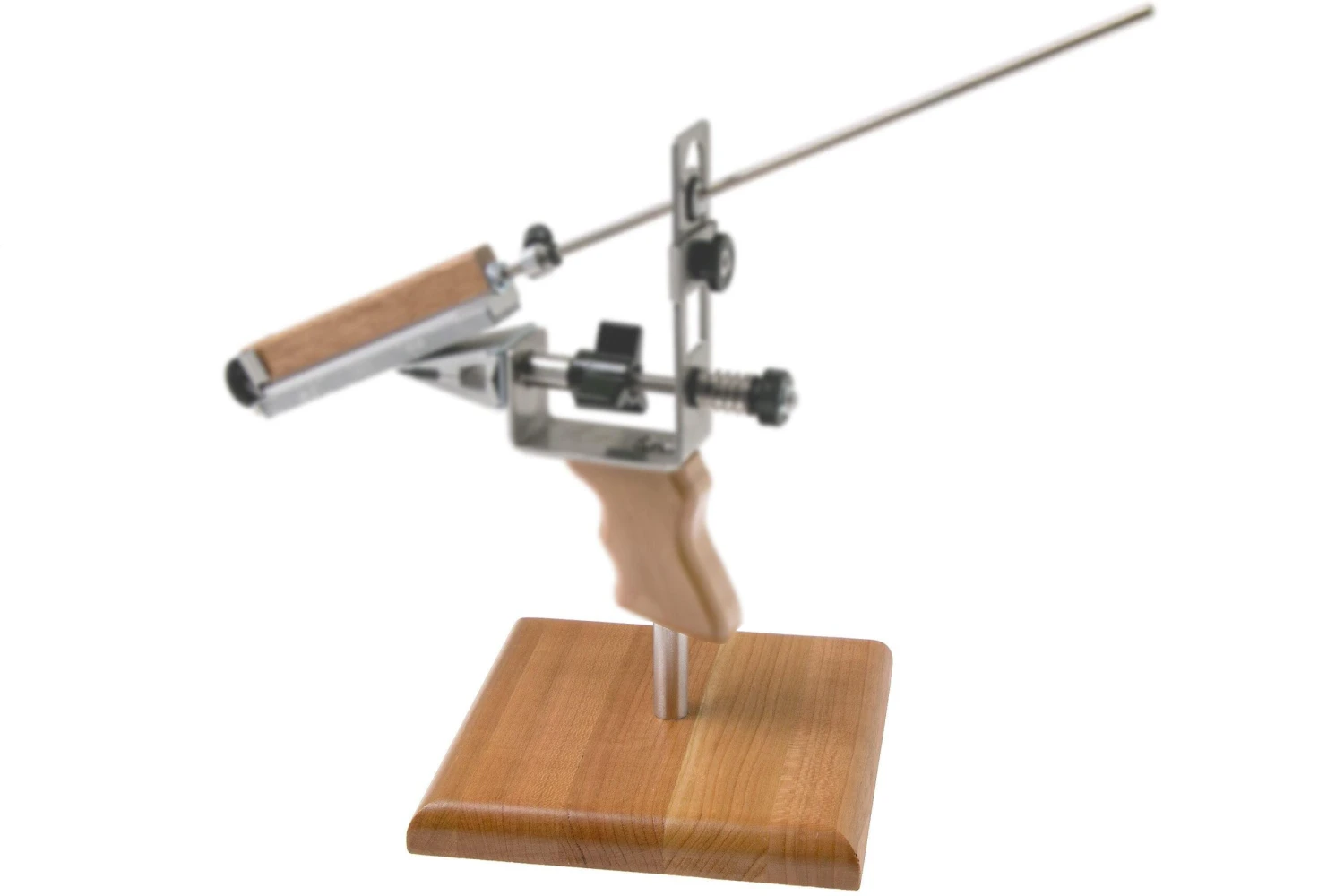 Der KME Kirschholzfuß ist eine unverzichtbare Basis für das KME Precision Knife Sharpening System, Diamond Stone Kit oder das KME Precision Knife Sharpening System, R.P.S.H. Combo Kit. Er hält das Schleifsystem so, dass Du das gesamte Schleifsystem auf den Tisch stellen kannst. An der Unterseite des Standfußes sind Gummifüße angebracht, damit er beim Schleifen nicht verrutscht.