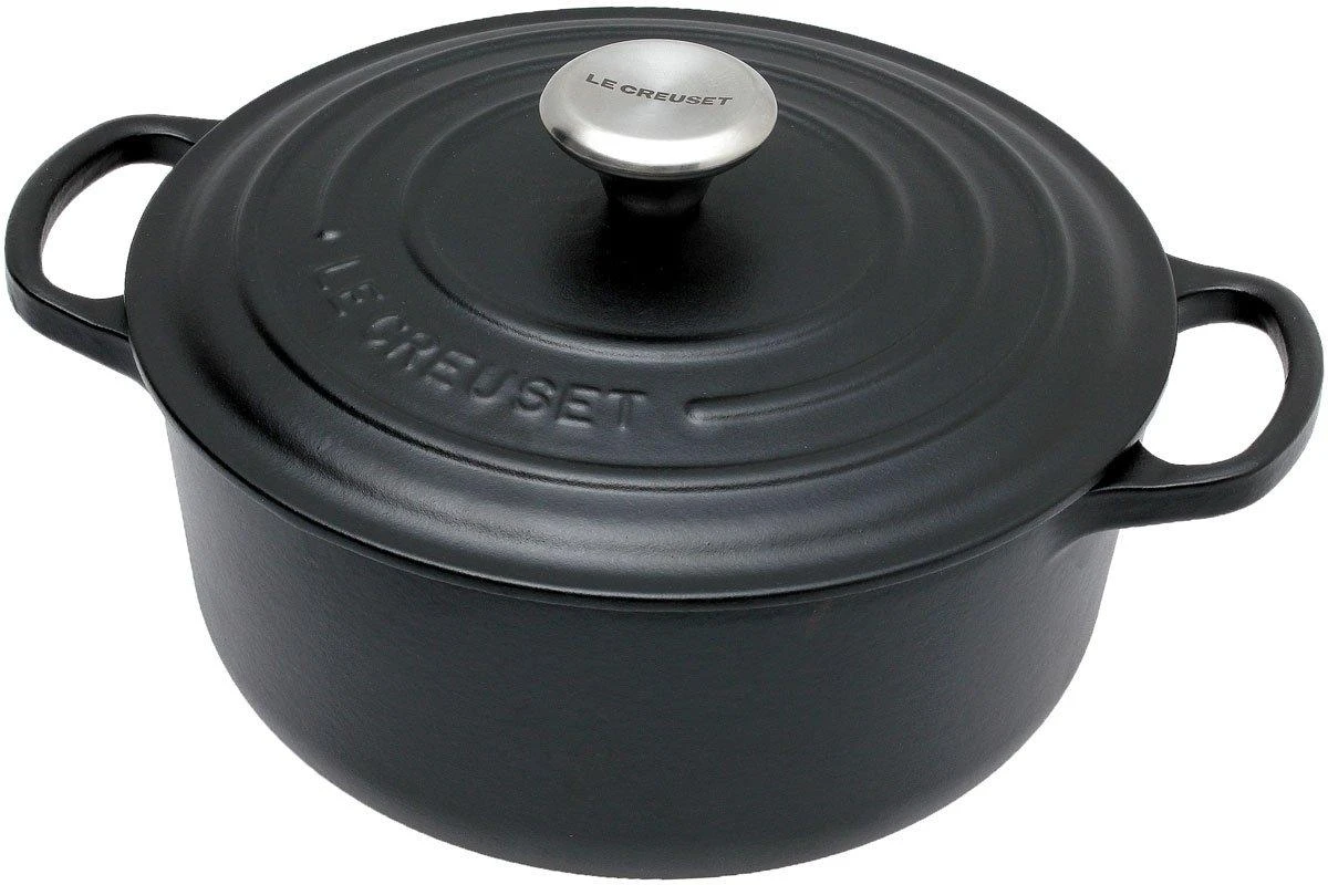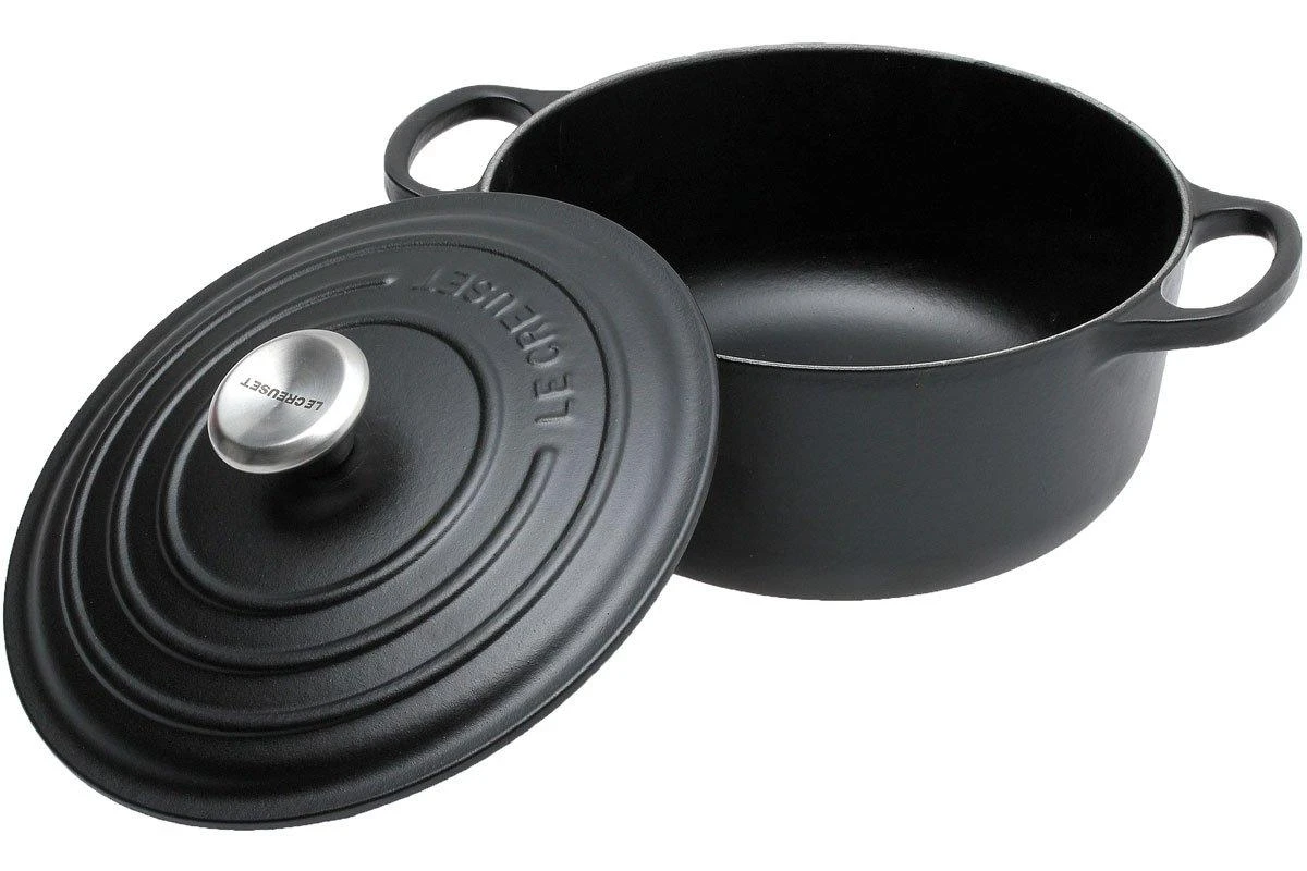 Diese Le Creuset Bratpfannen und Töpfe aus der emaillierten Gusseisen-Serie bestehen aus massivem Gusseisen. Es handelt sich um sehr stabile Qualitätspfannen und -töpfe, die Generationen lang halten. Diese Pfannen und Töpfe aus Gusseisen können sehr viel. Kochen, braten und schmoren auf allen Arten von Kochplatten. Backen im normalen Ofen, über Kohlen oder sogar in einem Holzofen. Sogar Kuchen und Aufläufe können Sie in diesen Emaillebrätern und -töpfen zubereiten. Die Töpfe sind auch dazu geeignet, Gerichte im Kühl- oder Gefrierschrank kühl zu halten. So können Sie die Pfannen oder Töpfe z. B. an einem heißen Sommertag gekühlt als Servierschalen verwenden.