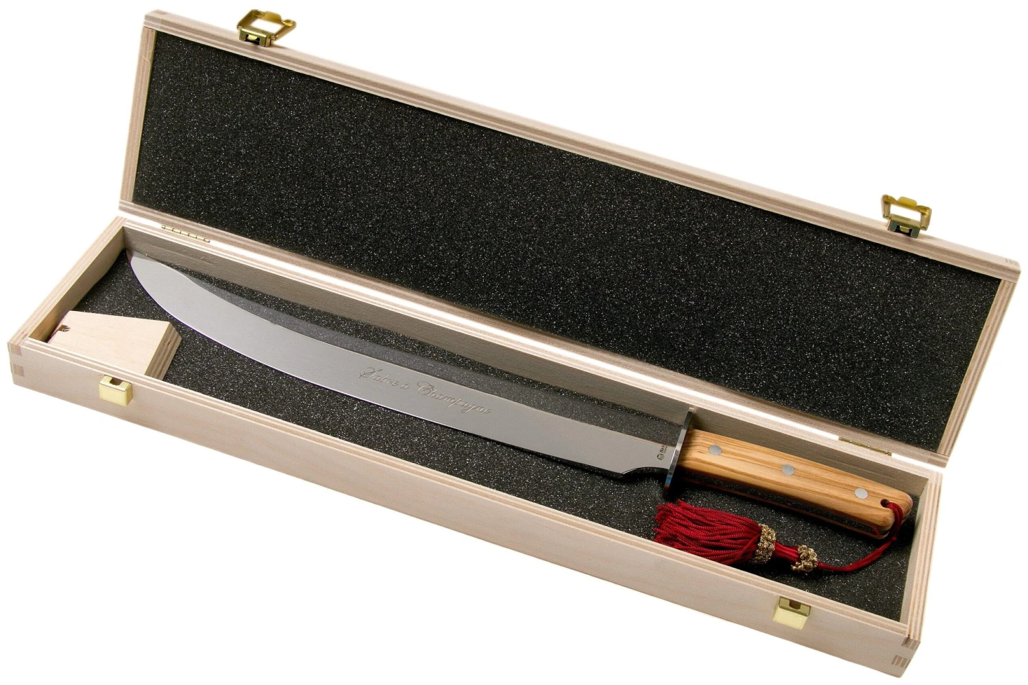 Der Maserin Champagnersäbel mit Olivenholzgriff ist ein echter Hingucker. Wenn Du die Champagnerflasche mit diesem Säbel öffnest, werden Deine Gäste sicher beeindruckt sein! Außerdem kannst Du ihn schön präsentieren; auf dem Tisch oder an der Wand ist dieser Säbel ein Kunstwerk für sich. Der Säbel ist auch ein tolles Geschenk für einen besonderen Anlass.