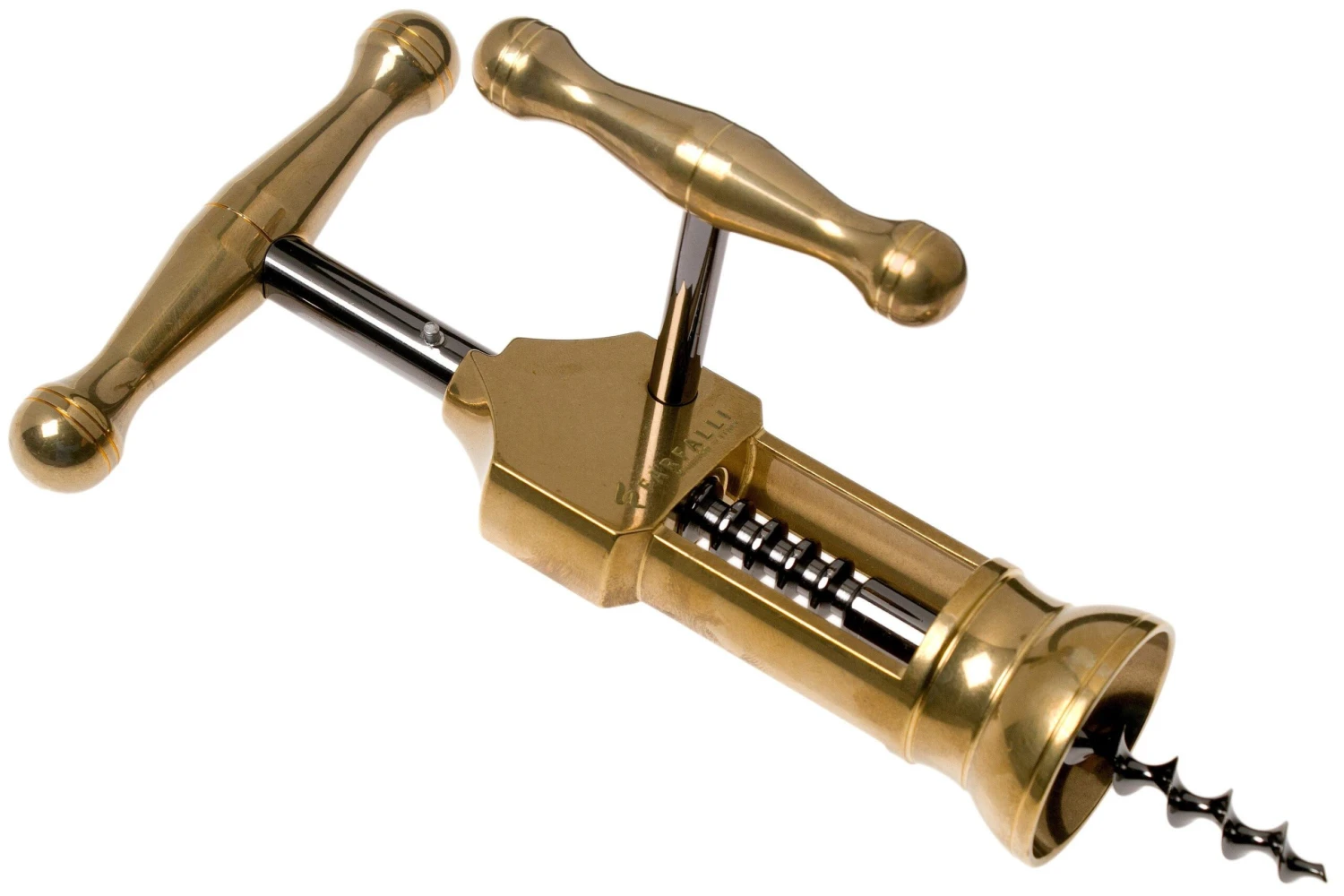 Man merkt sofort, dass der edle Maserin King Korkenzieher qualitativ hochwertig ist. Der Vollmetall-Korkenzieher fühlt sich robust und schwer an. Außerdem ist das Design elegant, und der King Korkenzieher wird in einer luxuriösen Geschenkbox geliefert. Der Korkenzieher ist von Hand gefertigt und besteht aus Messing. Das Modell ist eine Nachbildung eines London Rack Korkenziehers aus dem 19. Jahrhundert.