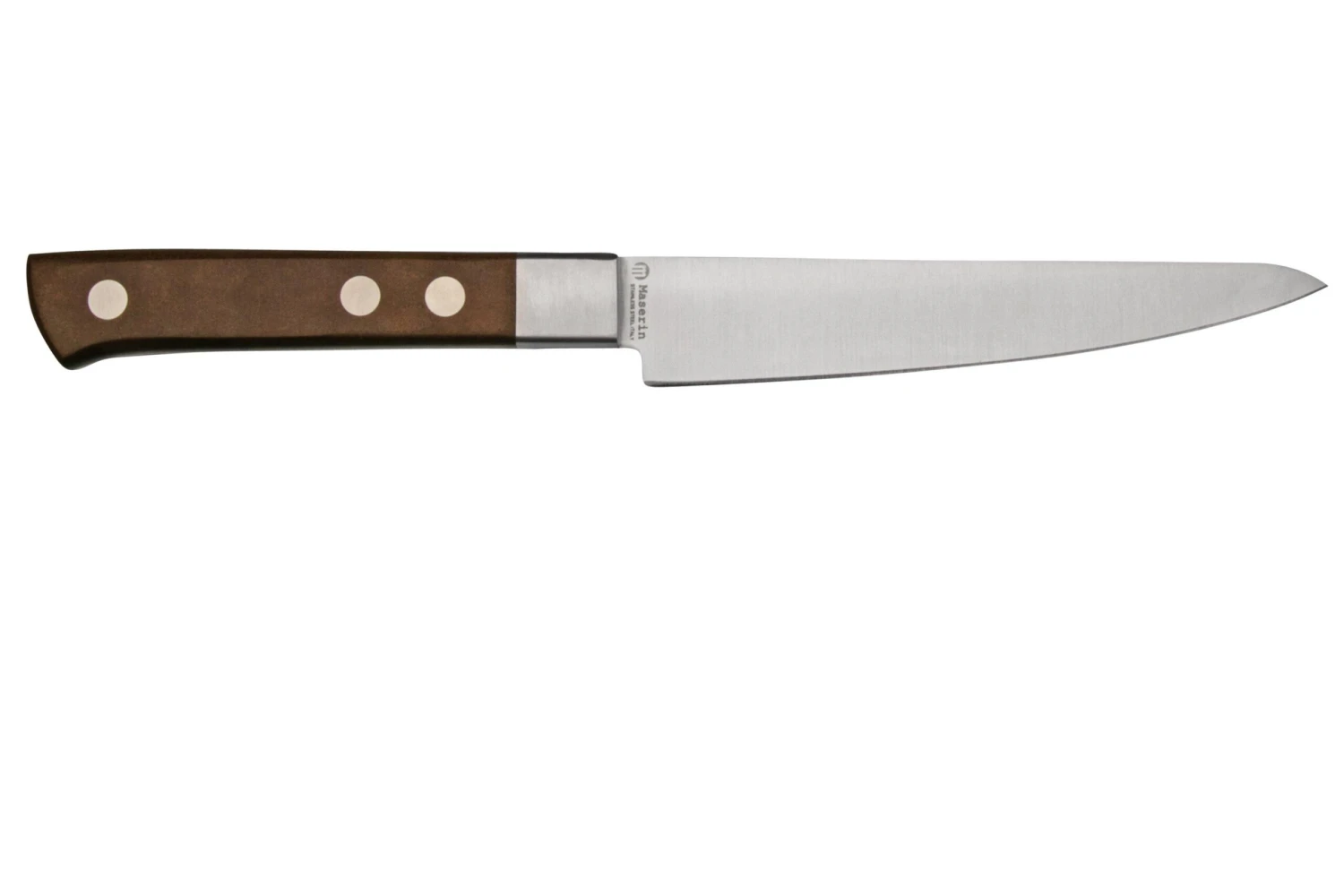 Das Maserin TEGI Steakmesser braun ist ein stilvolles und leichtes Steakmesser. Steakmesser sind für einen echten Fleischliebhaber unverzichtbar. Mit diesem Messer kannst Du leicht ein Steak oder ein anders Stück Fleisch schneiden, ohne die Fasern zu zerreißen. Da die Schneide keinen Wellenschliff aufweist, eignet sich das Messer auch hervorragend als Universal-Küchenmesser.