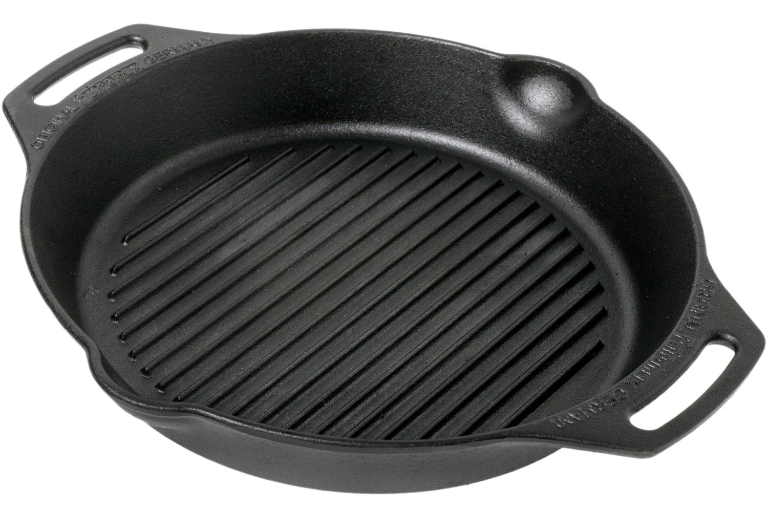 Die gusseiserne Grillpfanne GP30H-T mit zwei Griffen von Petromax ist perfekt, wenn Du Gemüse, Fisch oder Fleisch mit einem authentischen Grillgeschmack zubereiten möchtest. Diese Pfanne mit einem Durchmesser von 30 cm ist aus Gusseisen gefertigt und kann auf extrem hohe Temperaturen erwärmt werden. Du kannst die Pfanne auf dem Herd verwenden, aber auch im Ofen oder bei offenem Feuer zeigt sie, was sie kann. Egal ob ein perfektes Steak oder gegrilltes Gemüse: diese Pfanne kann einfach alles.