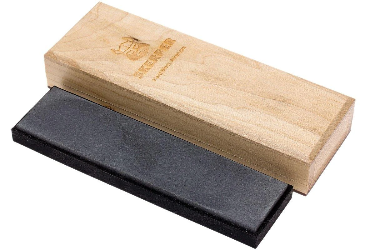 Skerper Hard Black Arkansas Schleifstein, vergleichbar mit einer 2000-3000er Körnung eines synthetischen Wassersteins.