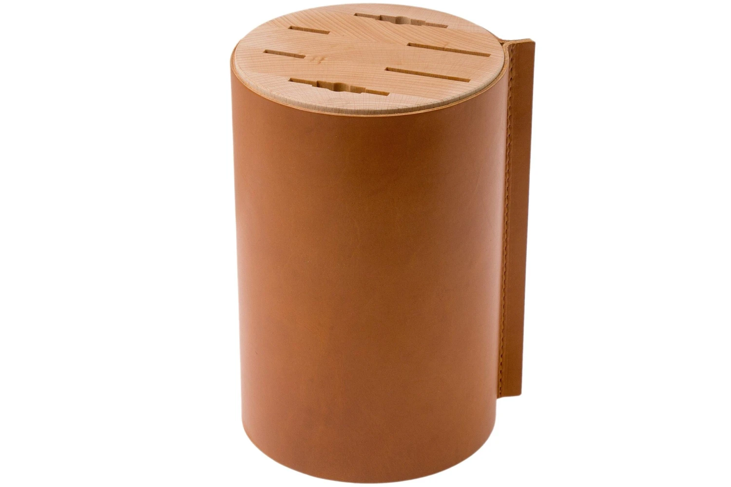 Dieser Wüsthof Amici Messerblock hat ein einzigartiges Design und ist somit ein echter Blickfang. Der Block ist aus Olivenholz gefertigt und mit italienischem Rindsleder umwickelt. Der Messerblock bietet Platz für 6 Küchenmesser. Fülle ihn zum Beispiel mit den schönen Küchenmessern aus der Amici-Serie! Außerdem sind zwei Öffnungen für einen Wetzstahl (bis zu 1,3 cm Durchmesser) oder eine Fleischgabel (mit einer Breite von bis zu 3 Zentimeter) vorgesehen.