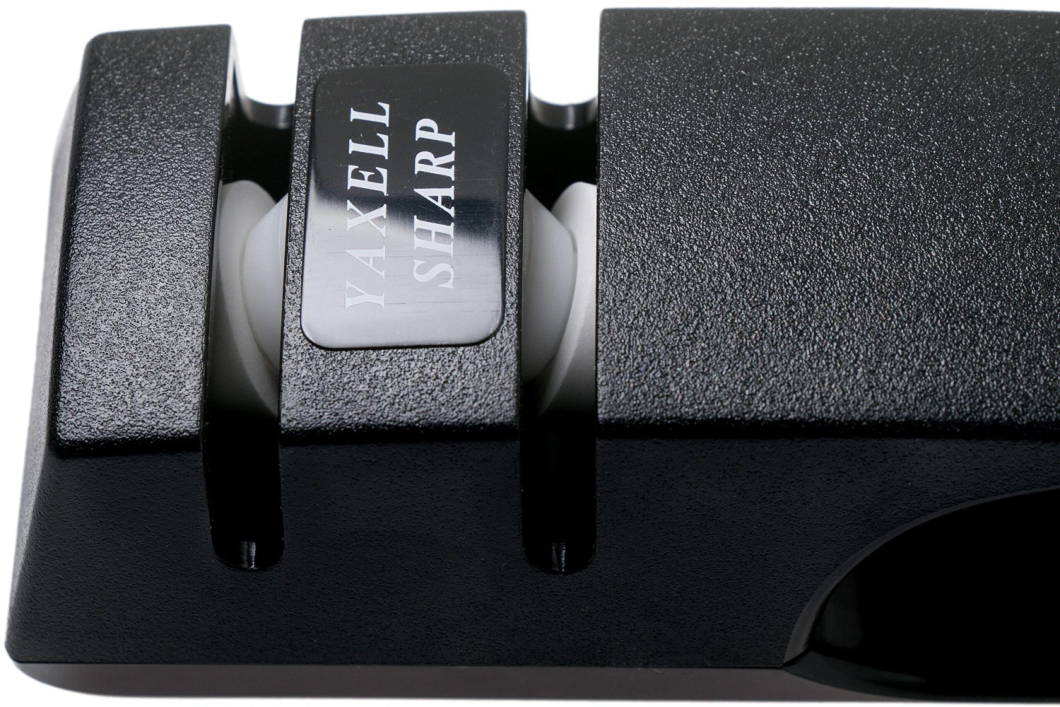 Der Yaxell Messerschärfer ist ein Messerschärfer mit zwei Keramikscheiben der Körnung 400, eine für beide Seiten der Schneide. Dieser Messerschärfer ist natürlich für Yaxell-Küchenmesser geeignet, aber auch für Küchenmesser anderer Marken lassen sich mit diesem Messerschärfer gut schärfen. Mit Ausnahme von Messern mit Wellenschliff, wie z. B. Brotmessern.
