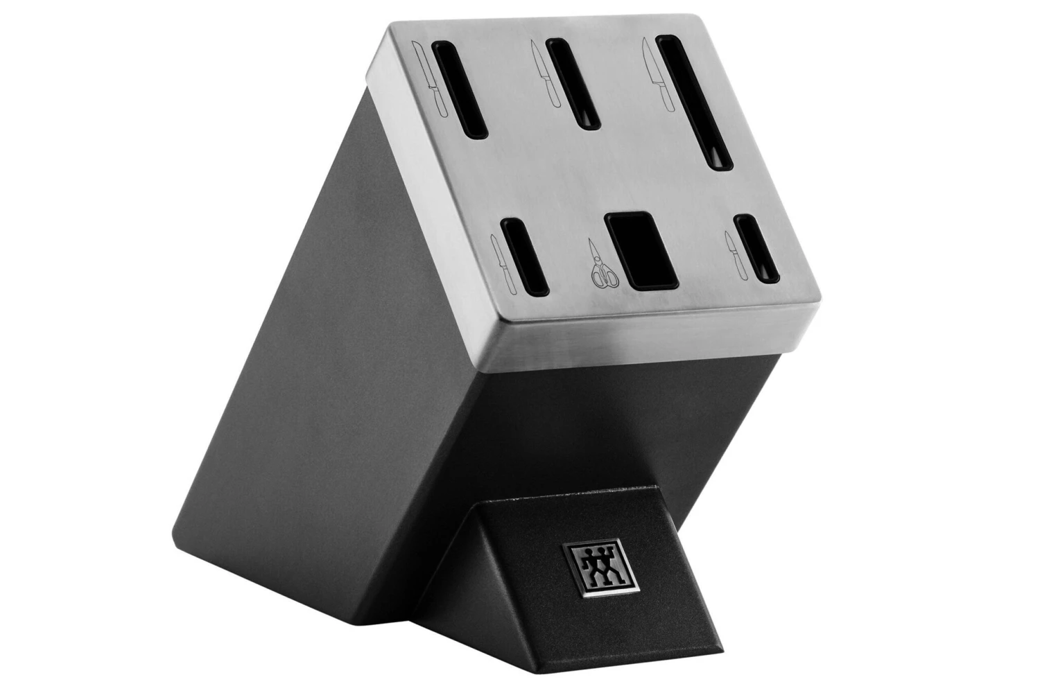 Mit dem Zwilling All Star 7-teiliges Messerset mit Messerblock, anthrazit/schwarz gehören stumpfe Messer der Vergangenheit an! Das liegt daran, dass der Messerblock die Klingen automatisch schärft. Wie macht er das genau? Mit Hilfe des Schleifsteins in den Schlitzen des Messerblocks. Dadurch wird die Klinge jedes Mal geschärft, wenn Du das Messer in den Messerblock legst und wieder herausnimmst. Eine weitere Besonderheit der Messer ist das Zwilling-Logo auf der Rückseite des Griffs. Bei dieser Version handelt es sich um den Messerblock in Anthrazit mit einem schwarzen Zwilling-Logo auf dem Griff.